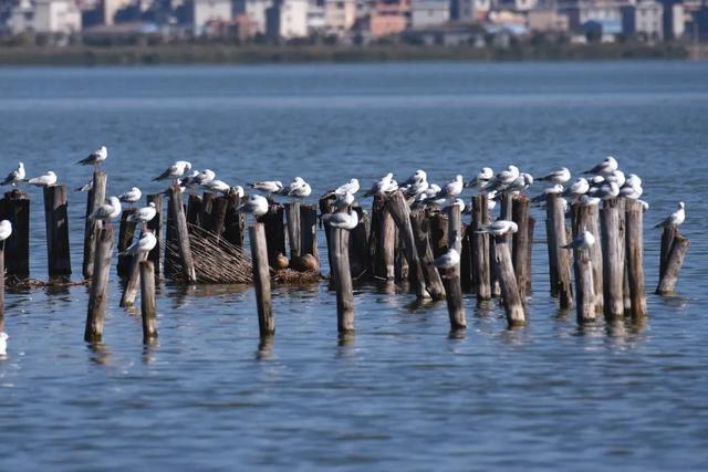 很多红嘴鸥偏疼这些自然歇脚处