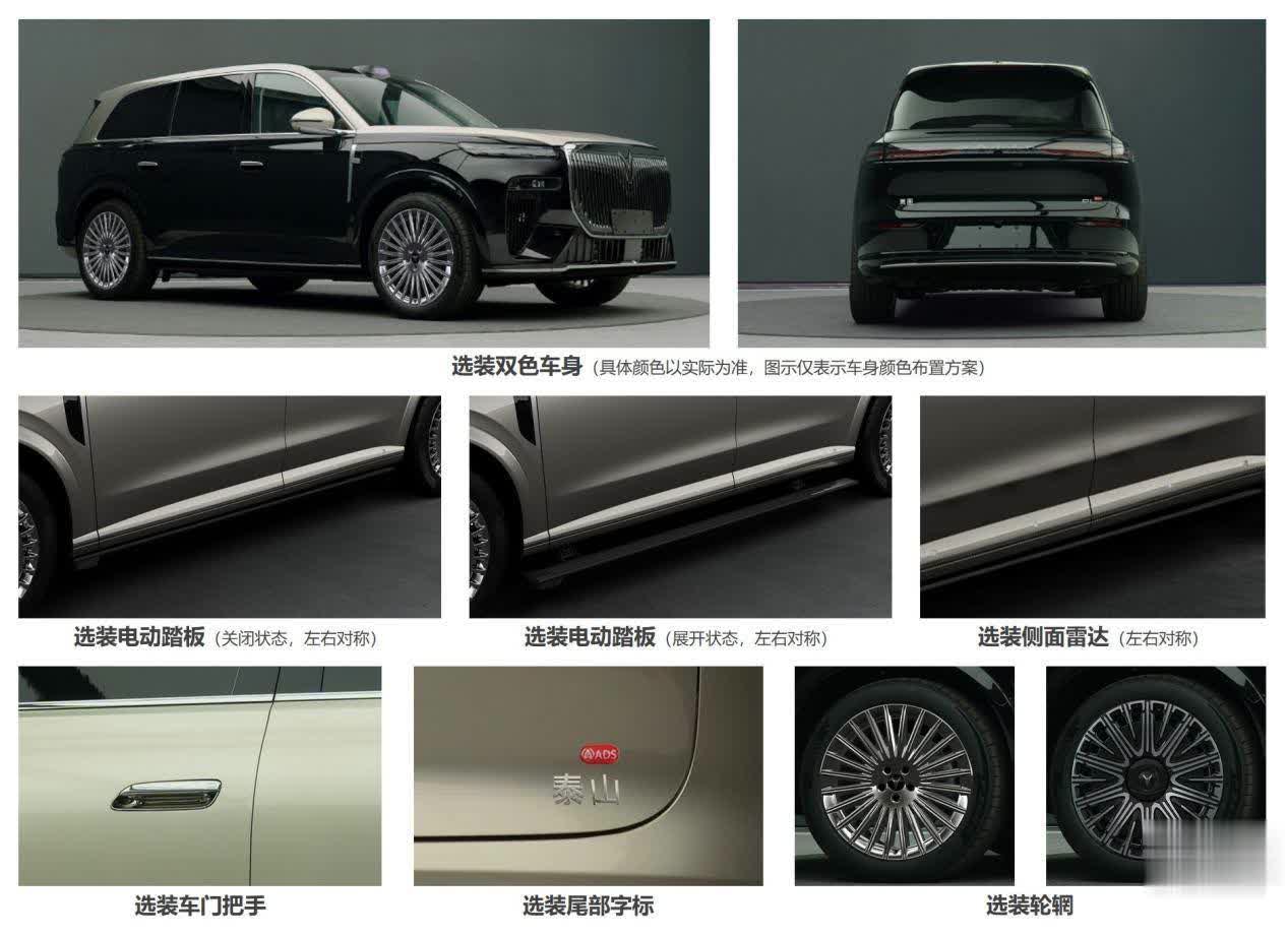 当先在外不雅方面,岚图泰山的外不雅策画千里稳大气,前脸接受了眷属化的策画话语,大尺寸的竖条镀铬格栅,融合联接式灯带和分体大灯,给东说念主的视觉后果如故很轰动的,尾部亦然联接式灯组,中间嵌入着发光LOGO,还能选装双色车身,举座作风既有豪华感又有科技感。